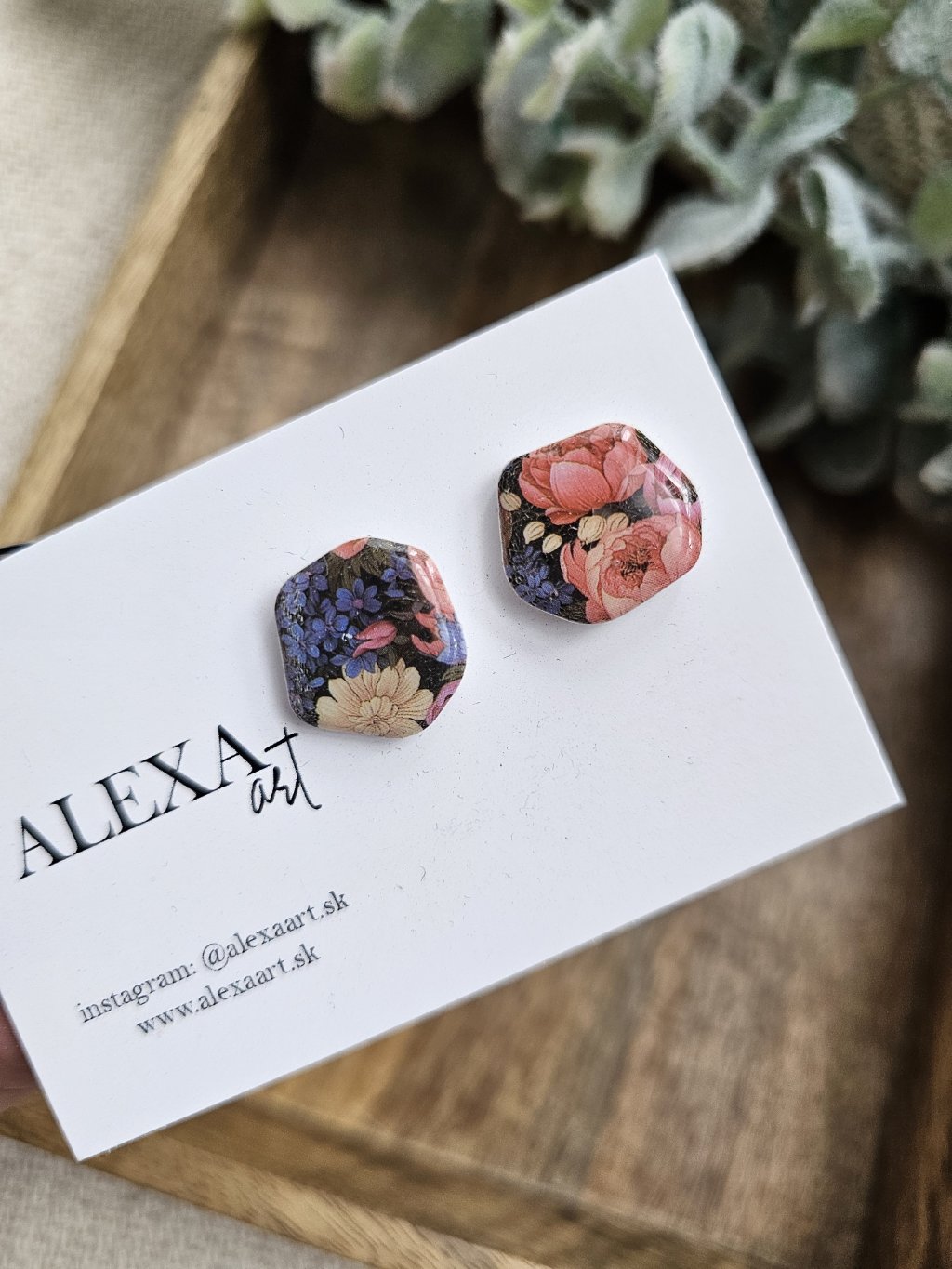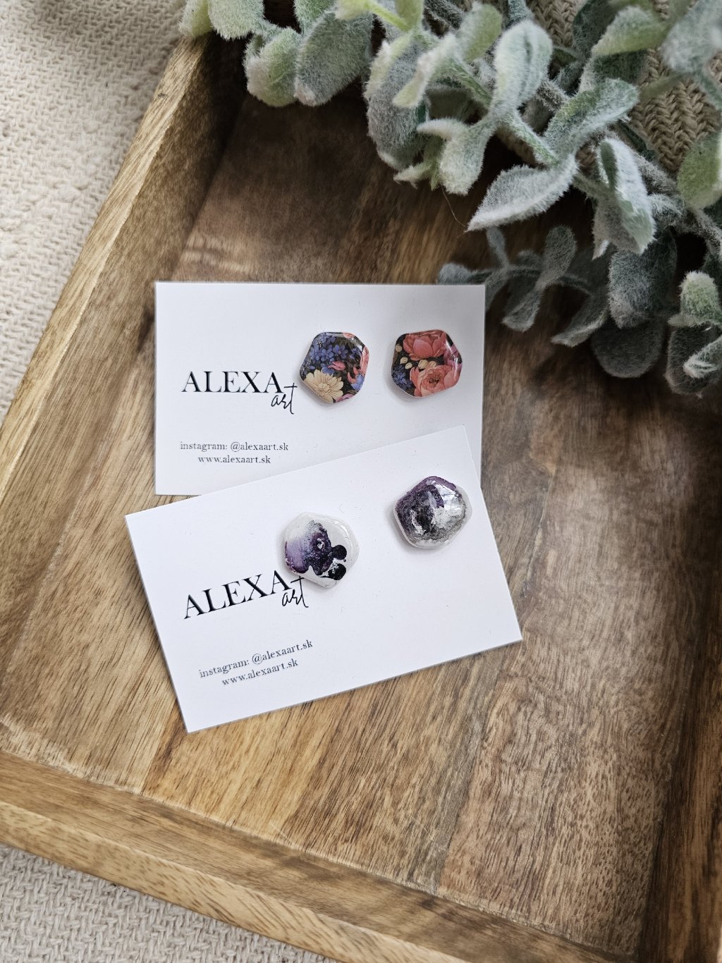 Každý kúsok je jedinečný originál, ručne vyrobený preto môže mať mierne odchýlky oproti fotografii. Sú vyrobené z polymérovej hmoty. Zapínanie je z chirurgickej ocele.