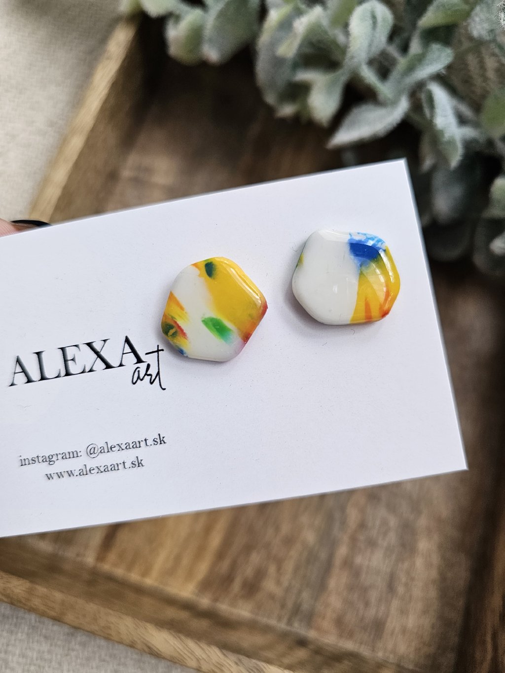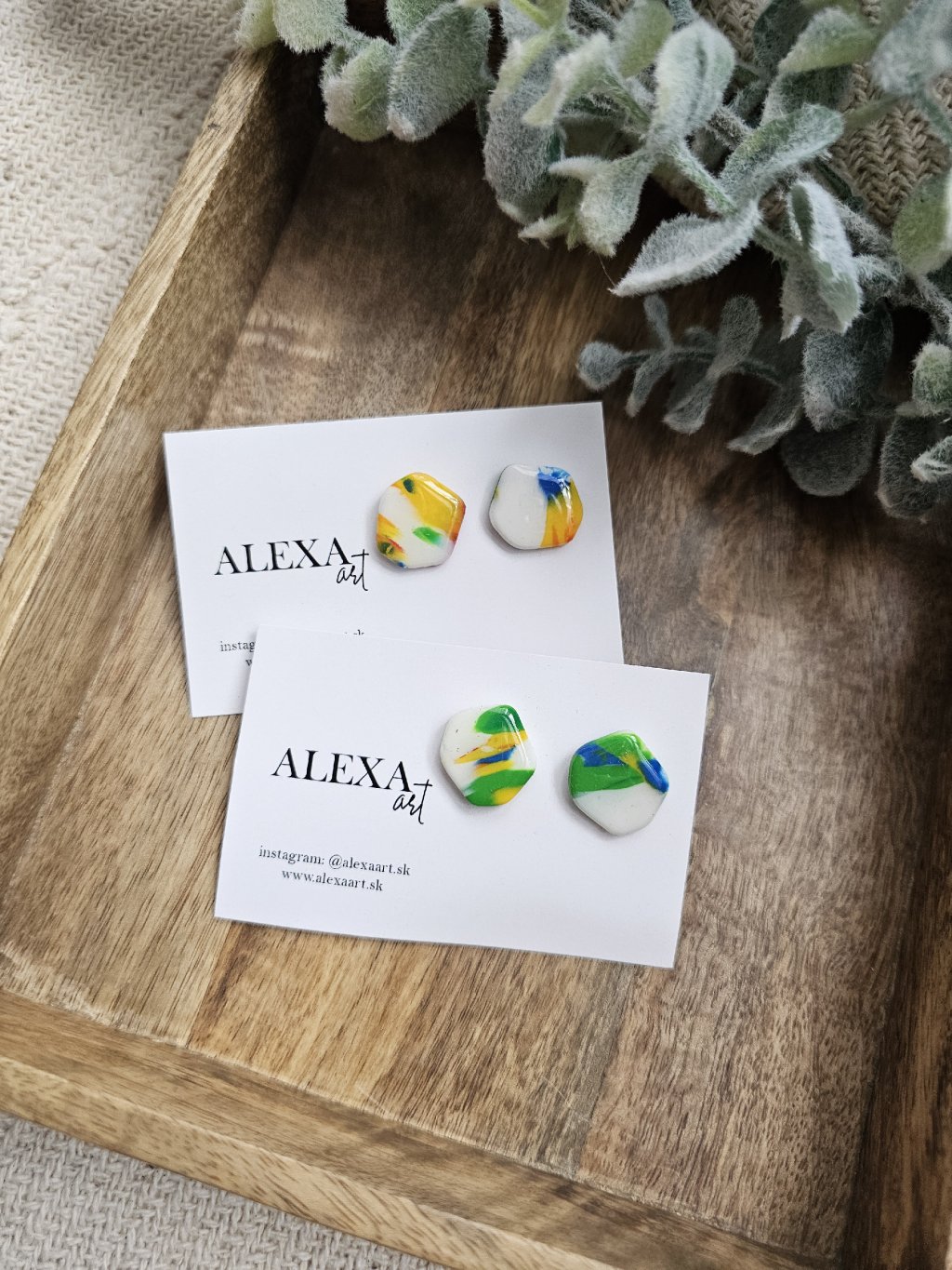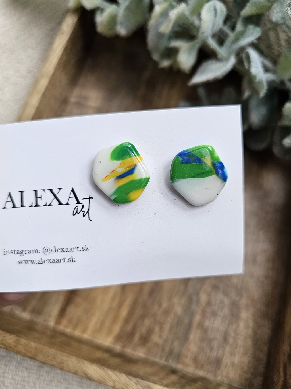 Každý kúsok je jedinečný originál, ručne vyrobený preto môže mať mierne odchýlky oproti fotografii. Sú vyrobené z polymérovej hmoty. Zapínanie je z chirurgickej ocele.