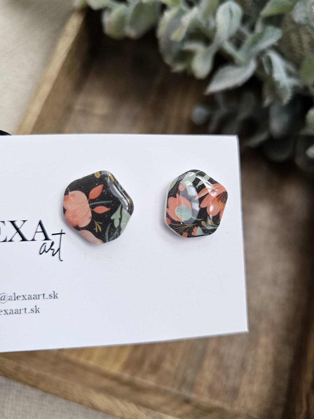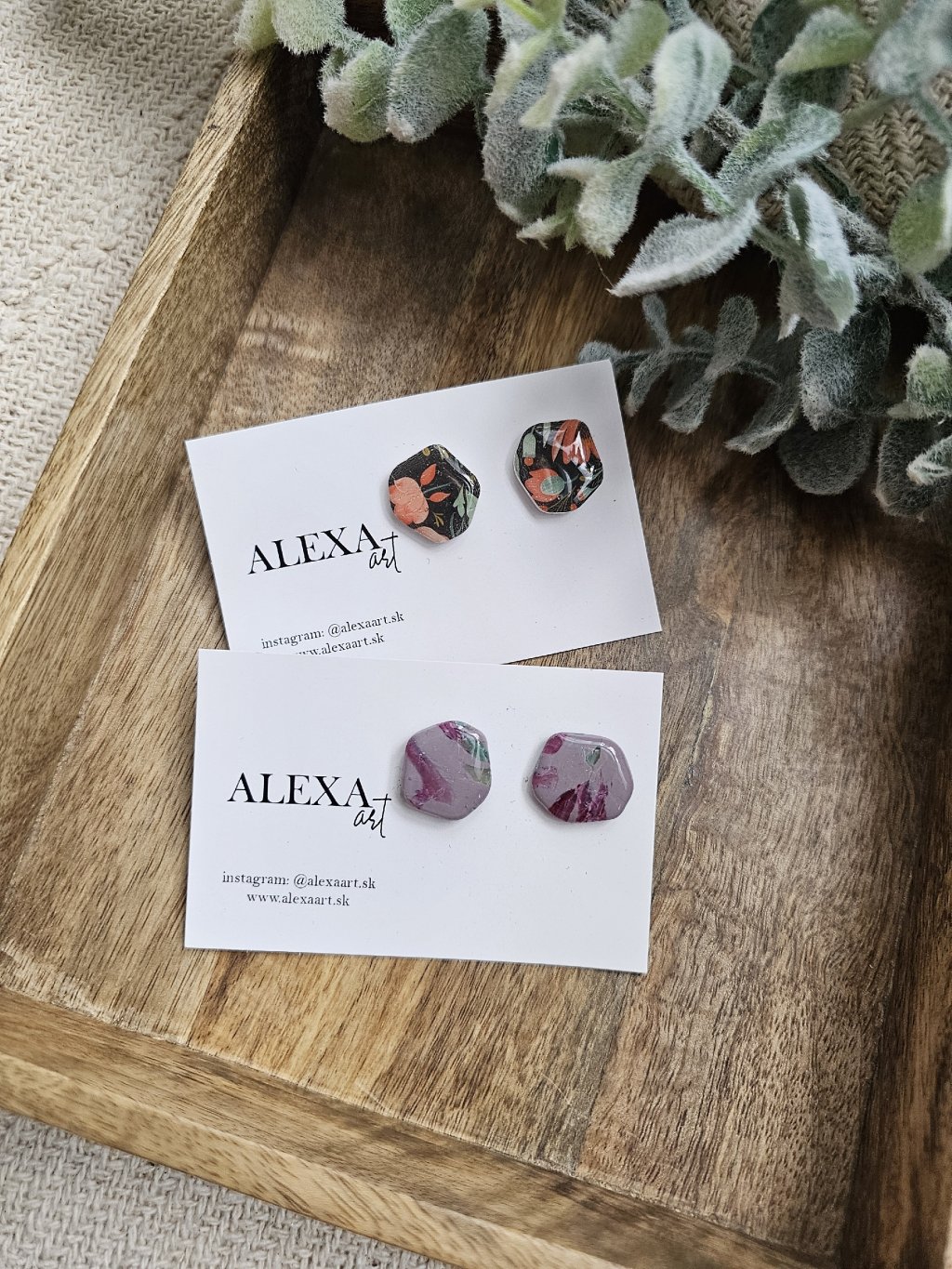 Každý kúsok je jedinečný originál, ručne vyrobený preto môže mať mierne odchýlky oproti fotografii. Sú vyrobené z polymérovej hmoty. Zapínanie je z chirurgickej ocele.
