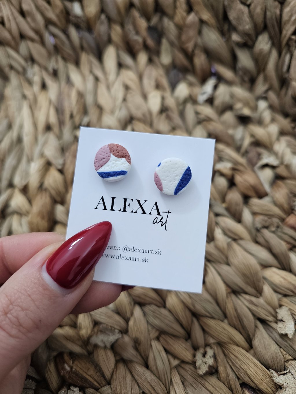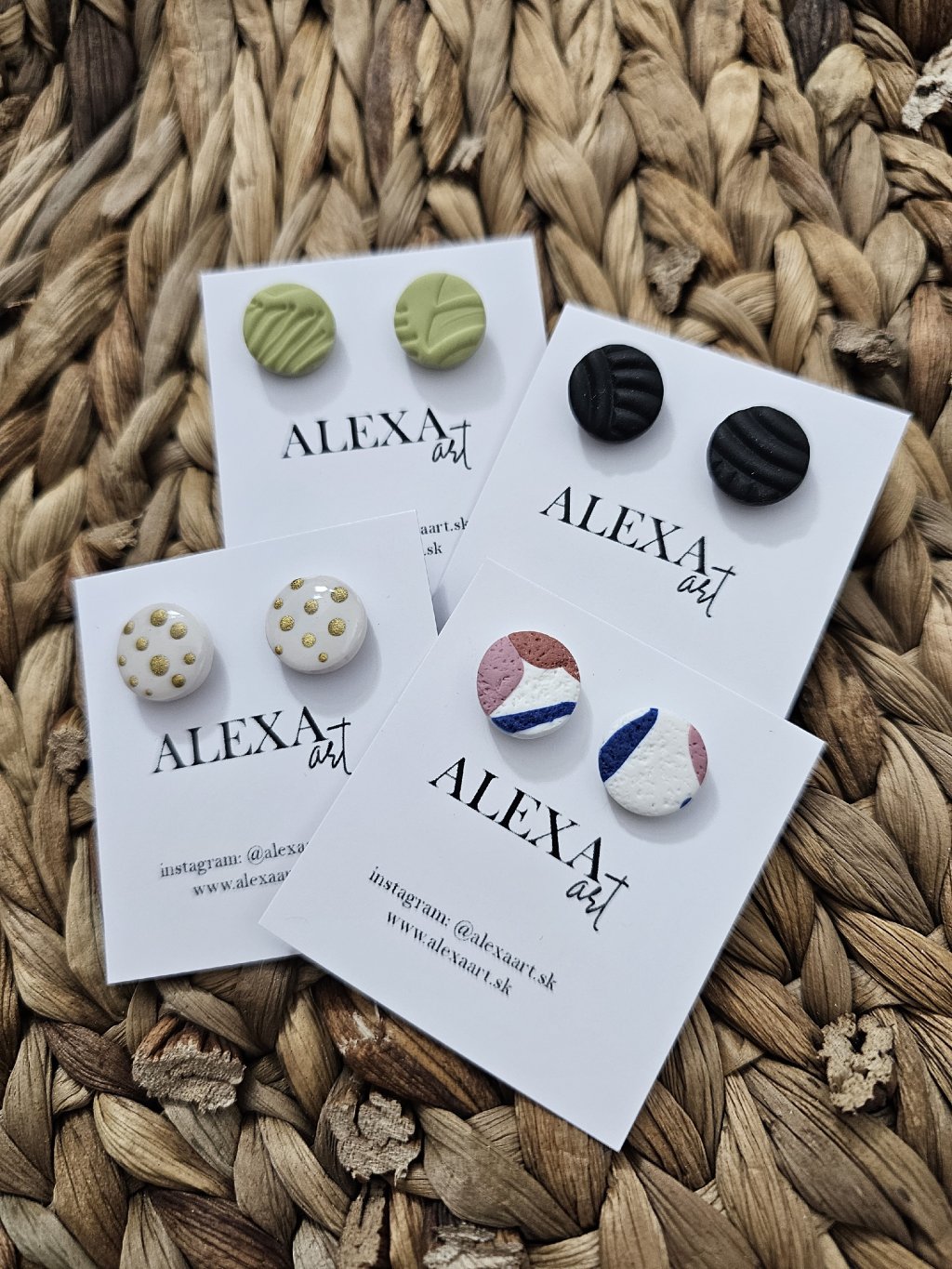 Náušnice sú z kolekcie Simple. Každý kúsok je jedinečný originál, ručne vyrobený preto môže mať mierne odchýlky oproti fotografii. Sú vyrobené z polymérovej hmoty. Zapínanie je z chirurgickej ocele.