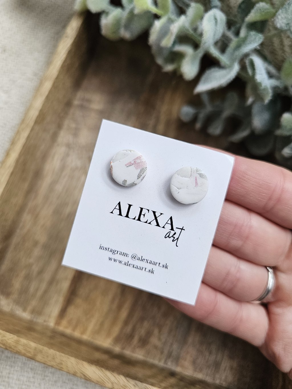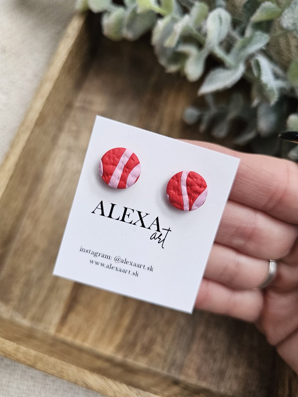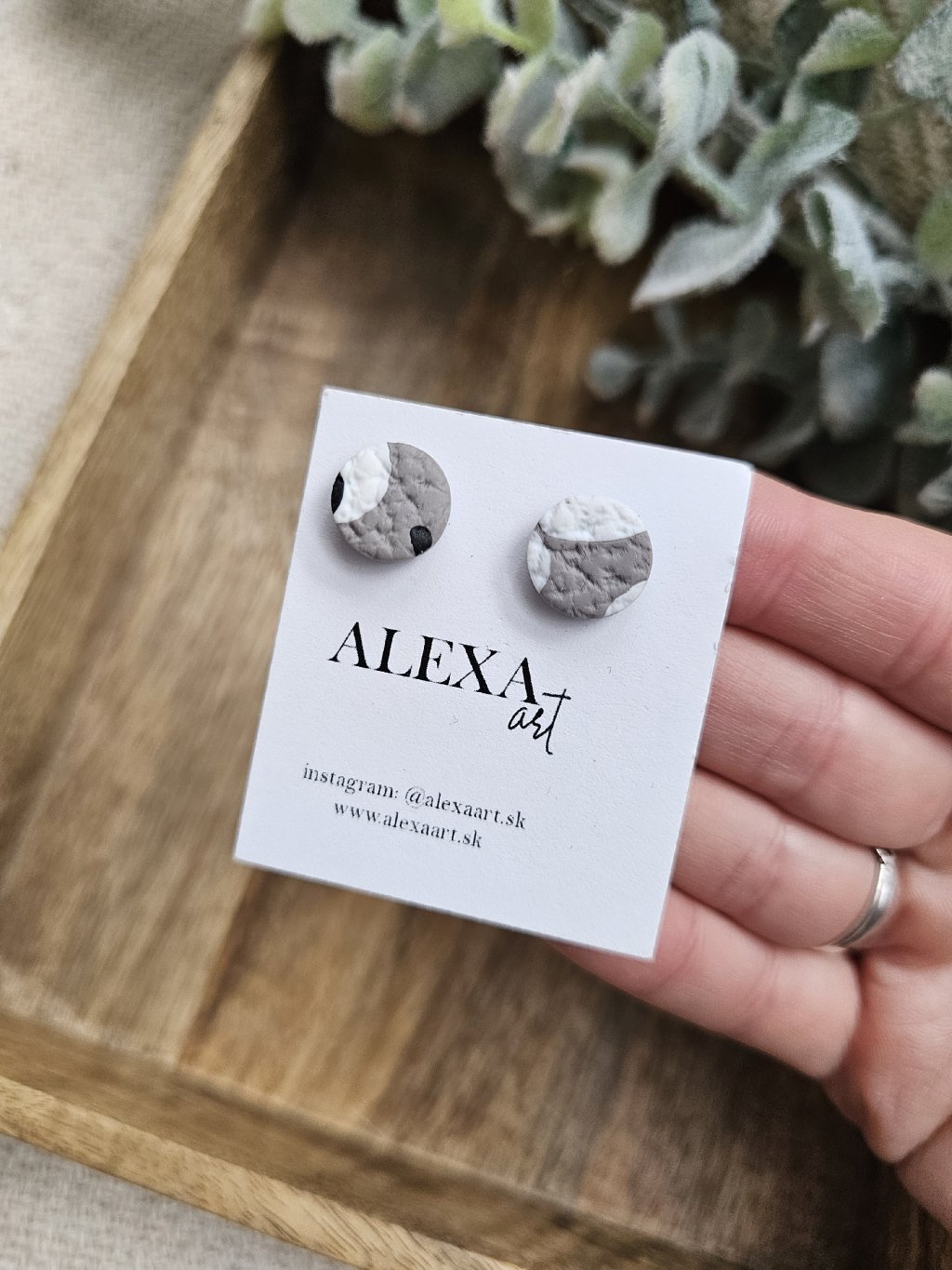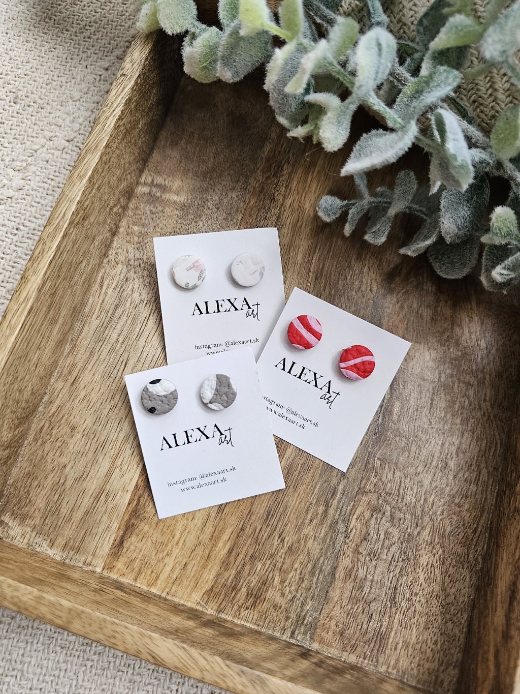 Náušnice sú z kolekcie Simple. Každý kúsok je jedinečný originál, ručne vyrobený preto môže mať mierne odchýlky oproti fotografii. Sú vyrobené z polymérovej hmoty. Zapínanie je z chirurgickej ocele.