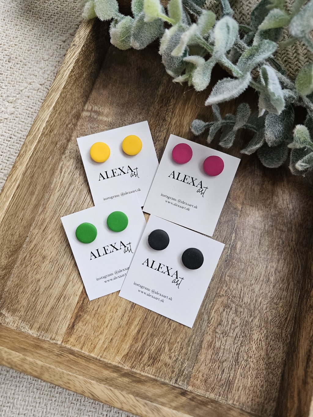 Náušnice sú z kolekcie Simple. Každý kúsok je jedinečný originál, ručne vyrobený preto môže mať mierne odchýlky oproti fotografii. Sú vyrobené z polymérovej hmoty. Zapínanie je z chirurgickej ocele.