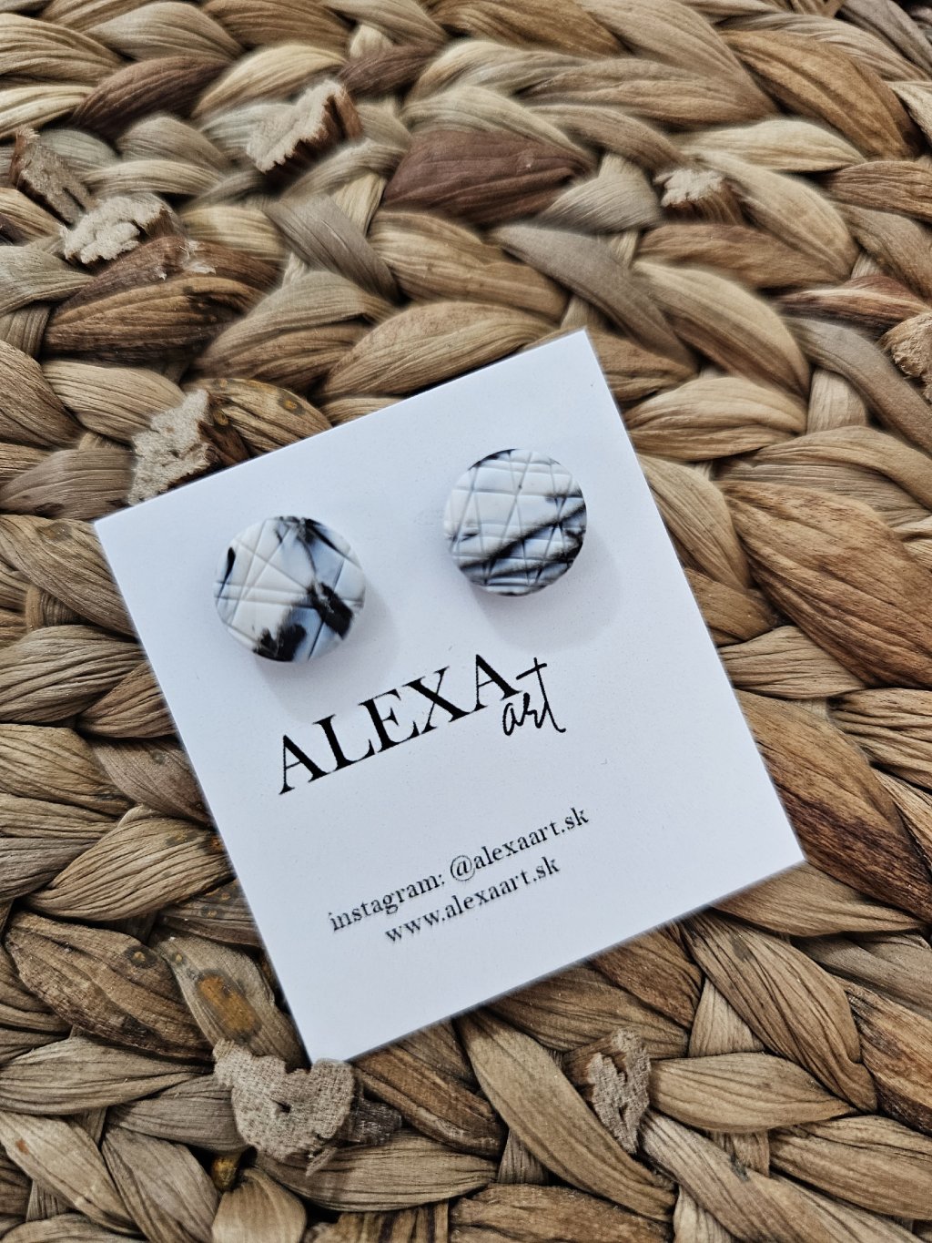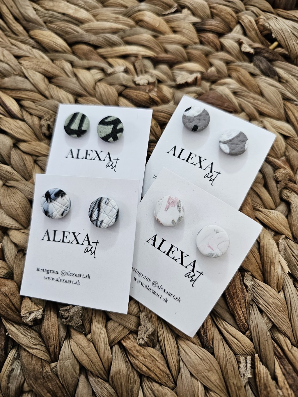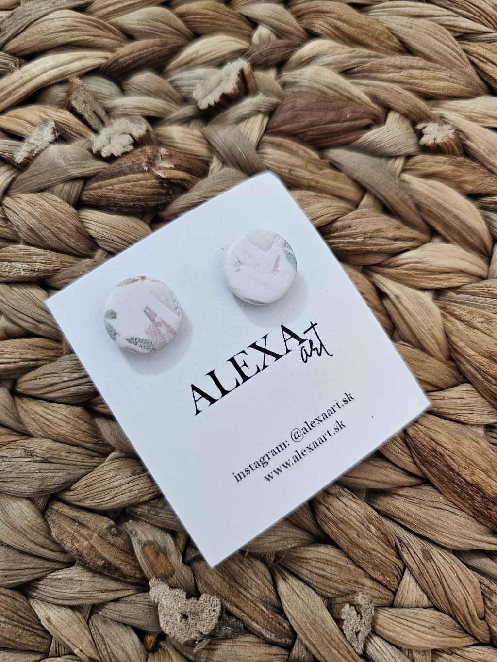 Každý kúsok je jedinečný originál, ručne vyrobený preto môže mať mierne odchýlky oproti fotografii. Sú vyrobené z polymérovej hmoty. Zapínanie je z chirurgickej ocele.
