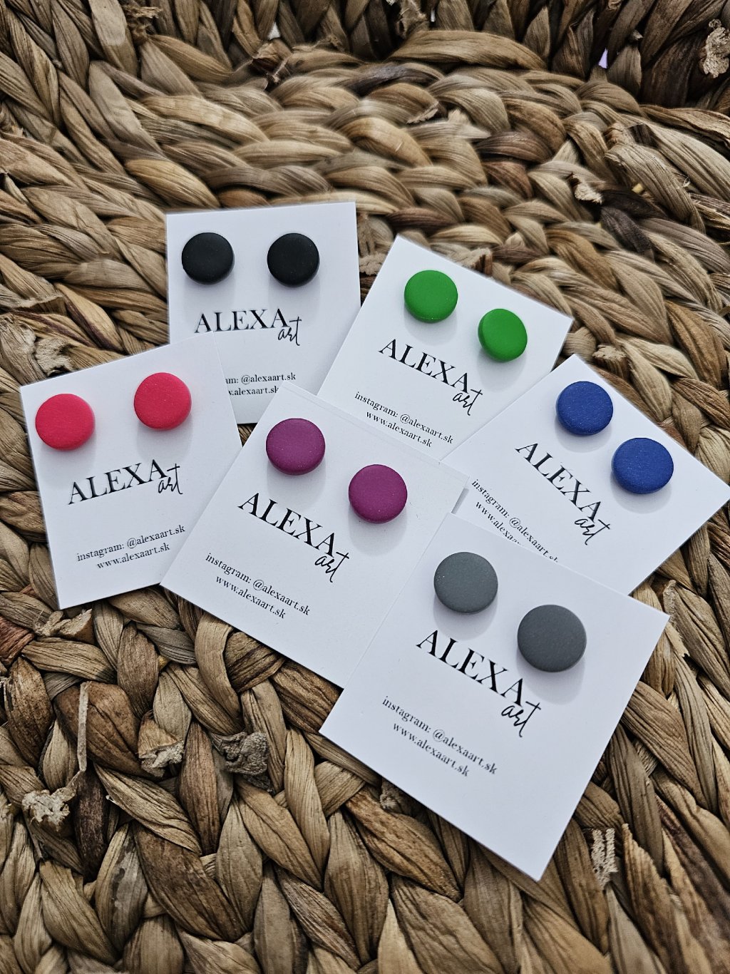 Každý kúsok je jedinečný originál, ručne vyrobený preto môže mať mierne odchýlky oproti fotografii. Sú vyrobené z polymérovej hmoty. Zapínanie je z chirurgickej ocele.