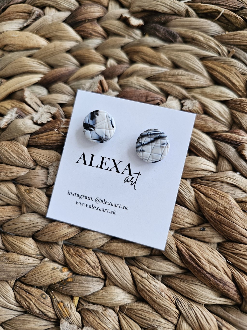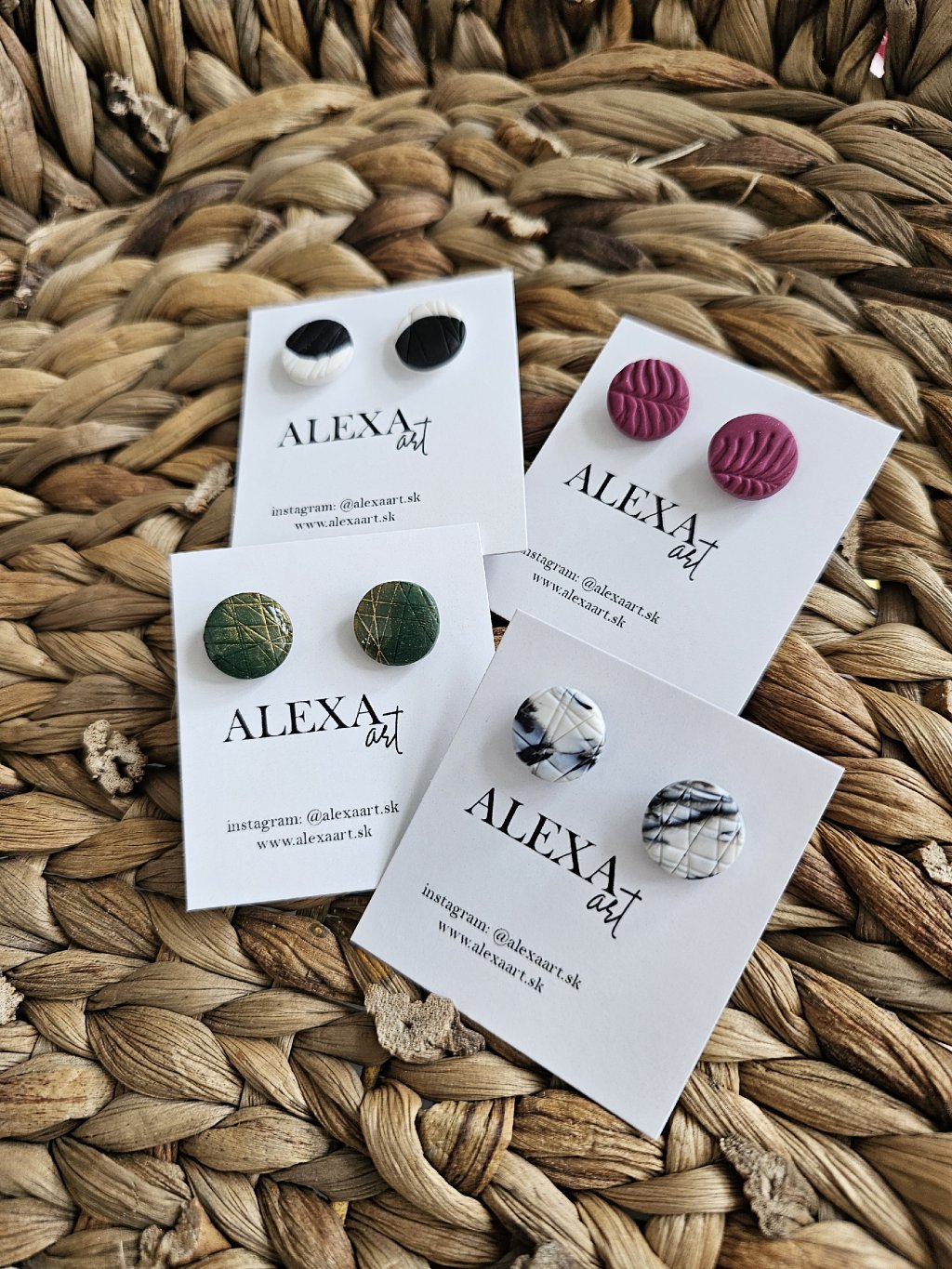 Náušnice sú z kolekcie Simple. Každý kúsok je jedinečný originál, ručne vyrobený preto môže mať mierne odchýlky oproti fotografii. Sú vyrobené z polymérovej hmoty. Zapínanie je z chirurgickej ocele.