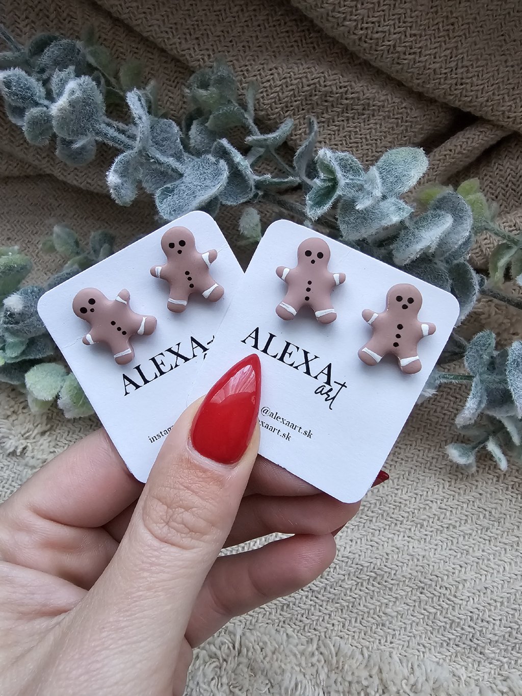Náušnice sú z kolekcie X-mas Každý kúsok je jedinečný originál, ručne vyrobený preto môže mať mierne odchýlky oproti fotografii. Sú vyrobené z polymérovej hmoty. Zapínanie je z chirurgickej ocele.