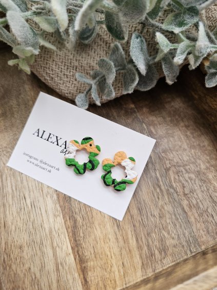 Každý kúsok je jedinečný originál, ručne vyrobený preto môže mať mierne odchýlky oproti fotografii. Sú vyrobené z polymérovej hmoty. Zapínanie je z chirurgickej ocele. ...