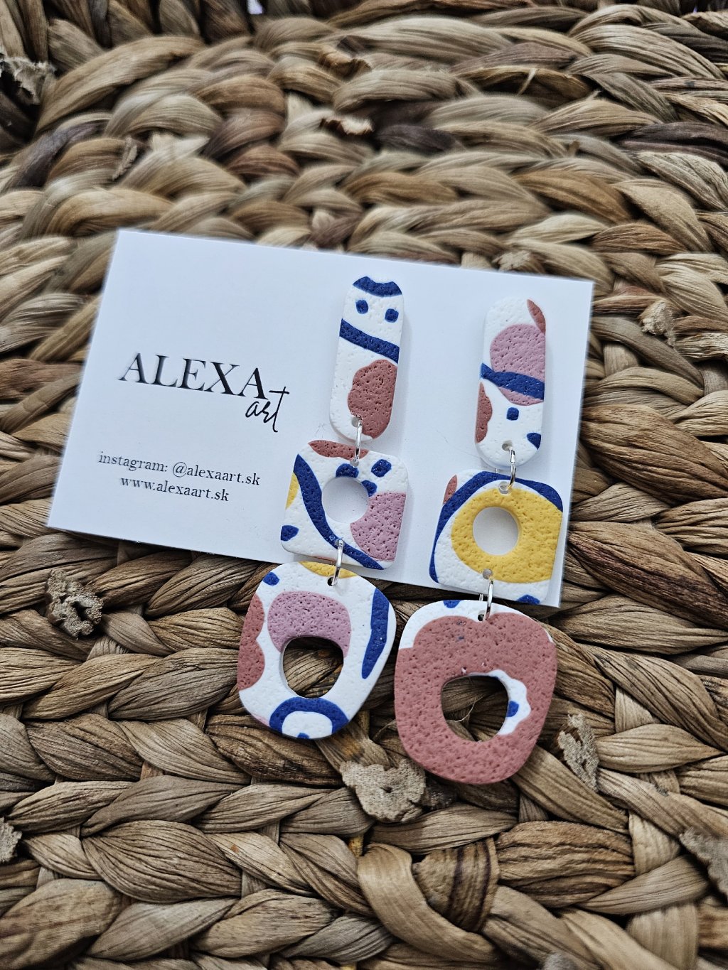 Každý kúsok je jedinečný originál, ručne vyrobený preto môže mať mierne odchýlky oproti fotografii. Sú vyrobené z polymérovej hmoty. Zapínanie je z nerezovej ocele.