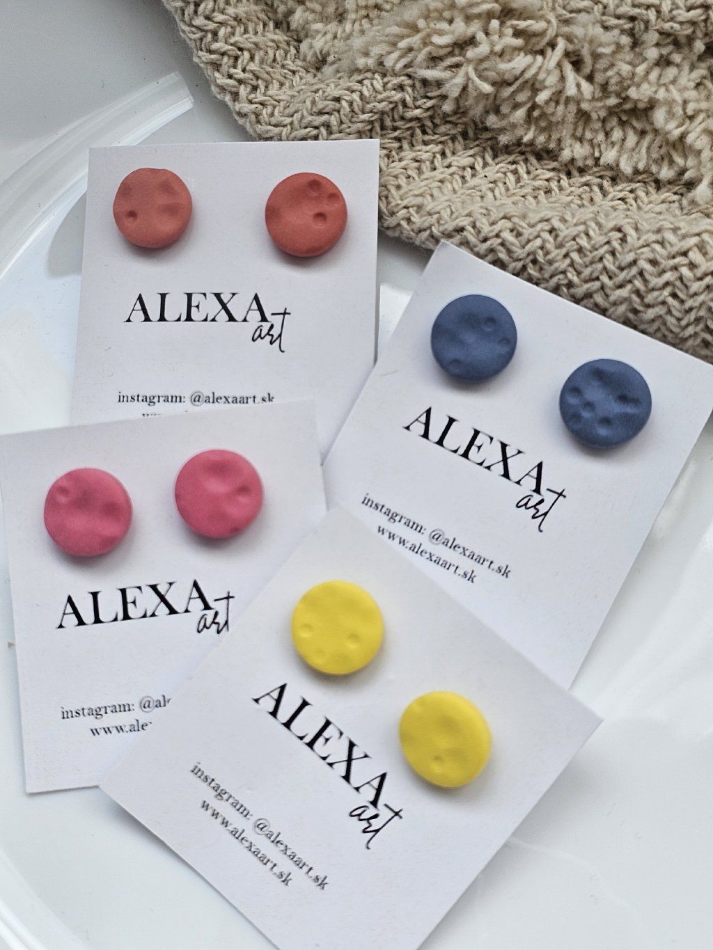 Každý kúsok je jedinečný originál, ručne vyrobený preto môže mať mierne odchýlky oproti fotografii. Sú vyrobené z polymérovej hmoty. Zapínanie je z chirurgickej ocele.