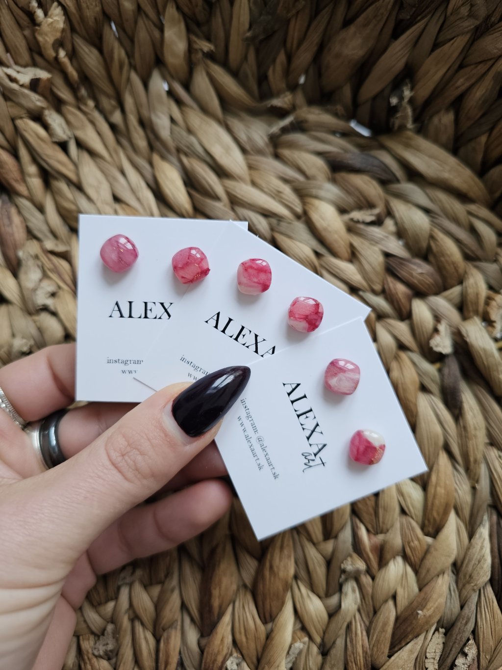 Náušnice sú z kolekcie Minis Každý kúsok je jedinečný originál, ručne vyrobený preto môže mať mierne odchýlky oproti fotografii. Sú vyrobené z polymérovej hmoty. Zapínanie je z chirurgickej ocele.